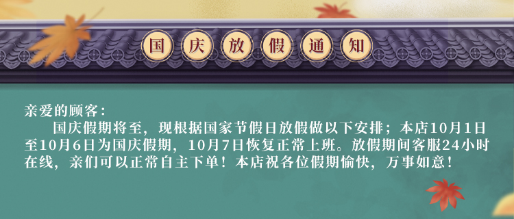 蒙泰護(hù)理國(guó)慶放假時(shí)間:2021年10月1日-2021年10月6日,10月7號(hào)正常上班,請(qǐng)做好備貨囤貨準(zhǔn)備,以免庫(kù)存不足。